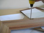 1. Painted, rather sloppily, the wooden frame with some silver paint. Because of the varnish on the wood of the frame, it came out looking more distressed than silver, but I liked it, so I kept it.