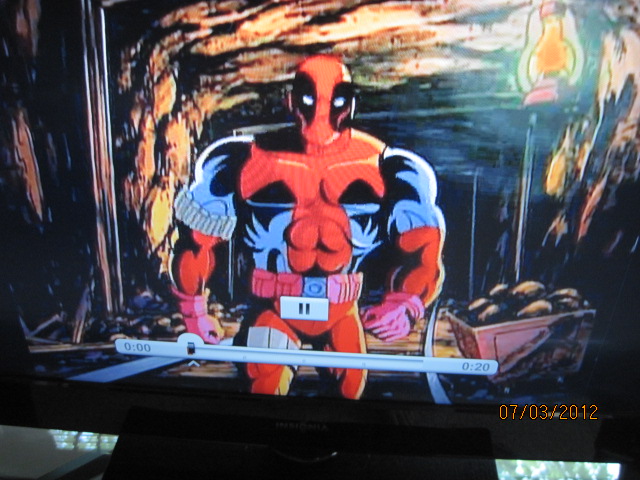 Say what?! Yes, that is Deadpool in the 90’s run of X-Men! Well, not really. It’s Morph taking the shape of Deadpool, but as I was bored, flipping through an old journal and watching X-Men, there he was. I squealed, had to rewind the scene, and take a picture.
