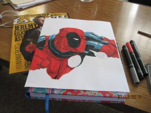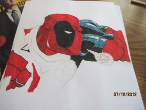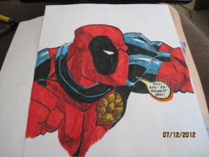 In answer to this dreaded day, I couldn’t bring myself to do anything really awesome. So instead I drew a picture of Deadpool. Here it is, in stages: