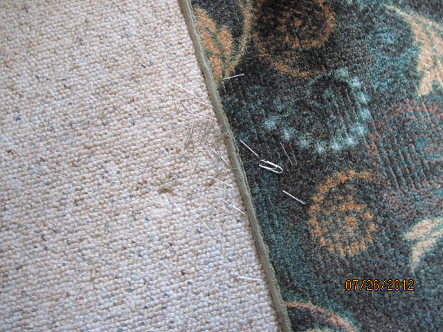 I pinned the bottom edge for the hem. I also ironed it down before I took it to the machine. Notice that I am not using my hand-made pin cushion. This is not because of any reason other than I keep forgetting about it.