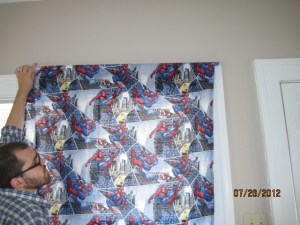 Now my brother is getting a curtain for the door and a valance for his window. And I will be getting a Spider Man skirt, perhaps. Or tote. I’ll still have quite a bit left over.