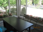 I also moved the desk to the other side of the porch, pulled it away from the wall, and I placed our four plastic chairs around it, to make a welcoming table area.