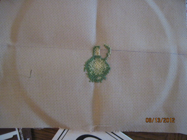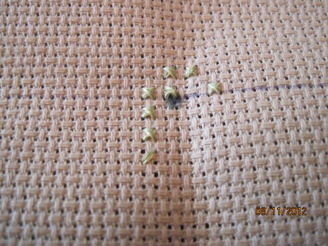 Reading the directions about three times, I found the center of my cloth, pulled out some strands of the appropriate thread and began the pattern.