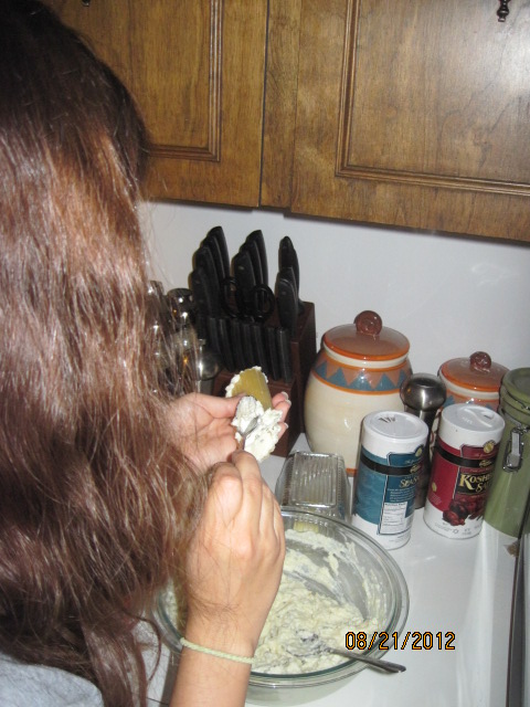 I beat an egg and mixed ricotta, mozzarella, and parmigiana in a bowl while the pasta cooked.