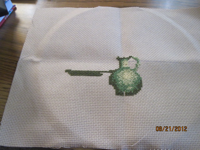 Well, I am about 8 hours…I think…into the cross stitch/needlepoint project, and this is where I’ve gotten: