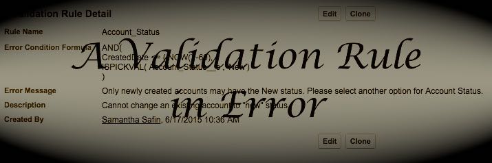 So the moral of the story here should be pretty simple: don’t hardcode IDs in your formulas or validation rules in a sandbox. Because they will be different in production.