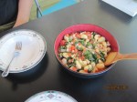 Sunday night, after finishing the porch project, I made “Skillet Gnocci with Chard and White Beans” from Eating Well. It’s, um, exactly what it sounds like. It’s gnocci (potato-filled pasta from North Italy. Scrumptious!), some sort of green (I used spinach), tomatoes, and optional cheese. And you cook it in a skillet.