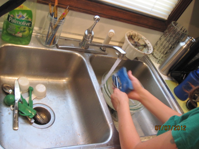 As it turns out, acrylic paint doesn’t coat glass very well – at least not the first coat. Apparently this is common knowledge, but I had no idea because, for most of my life, I have been craft-challenged. I’ve looked it up by now, so I know that you have to prime the glass – one person suggested Mod Podge matte finish, which of course I have upstairs!