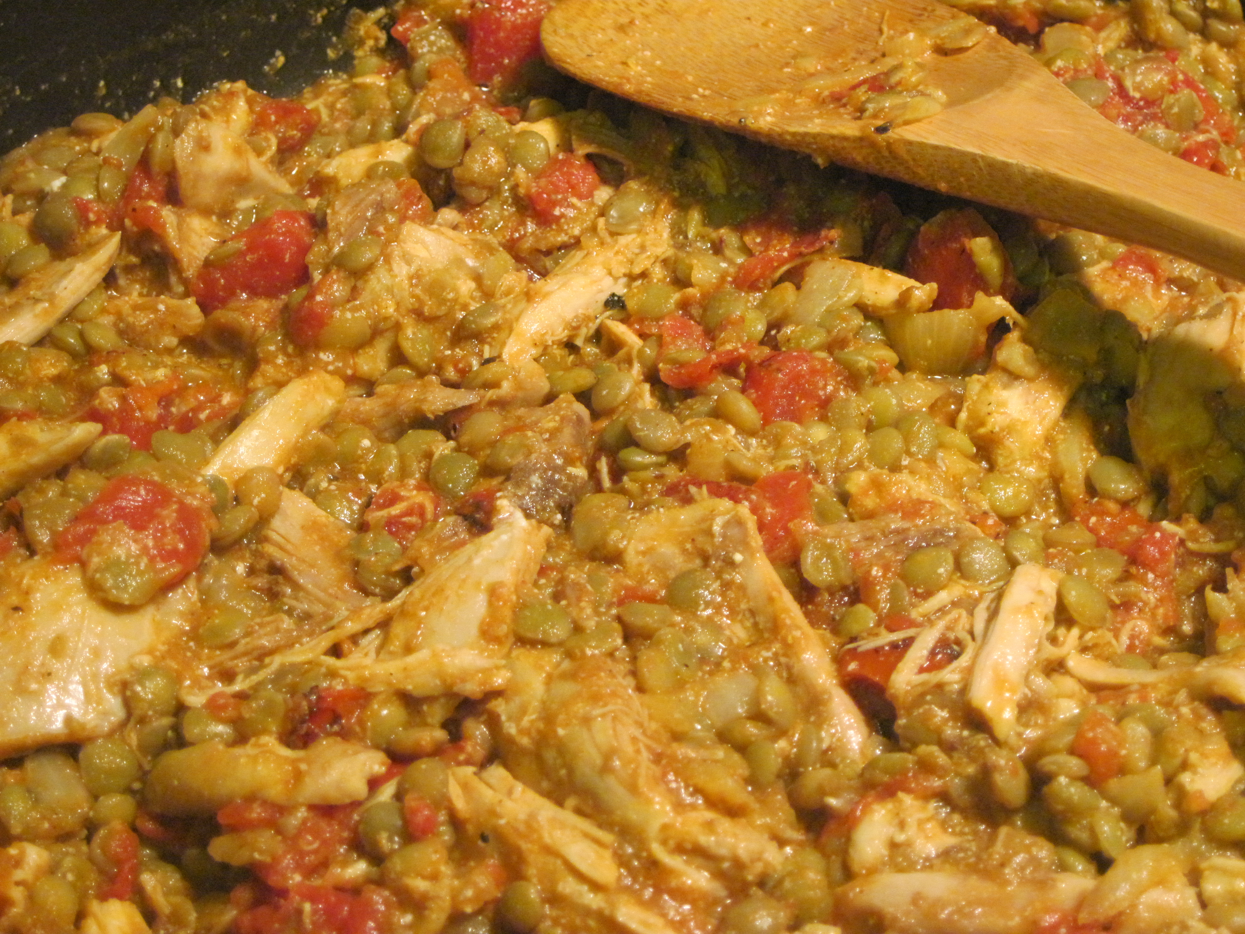 Ingredients: Roast chicken, lentils, fire roasted tomatoes, canola oil, plain yogurt, curry powder.